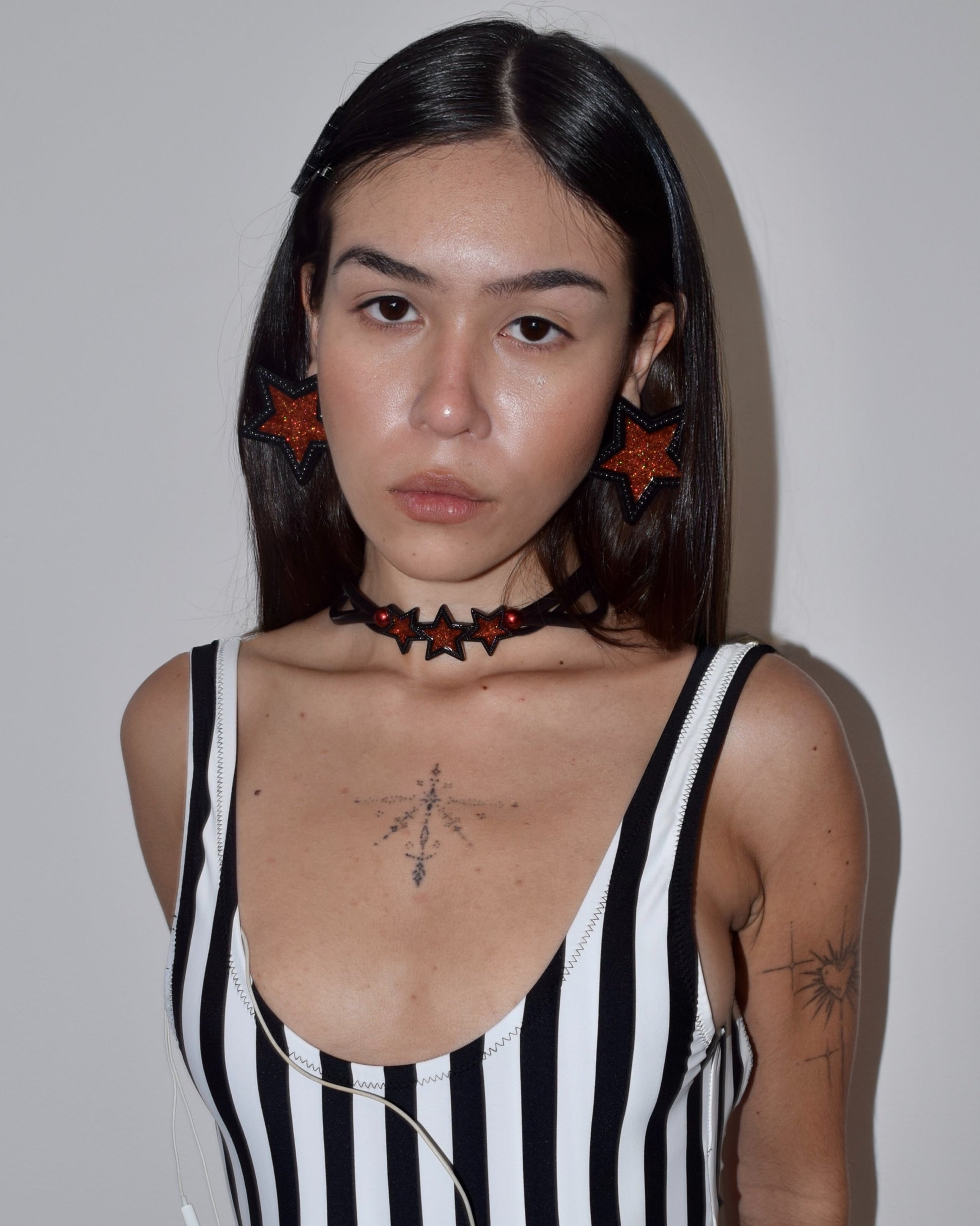 Os Brincos Haniel’s Ear Pods trazem a estrela como símbolo central da 44, reinterpretada em uma versão vibrante e contemporânea.